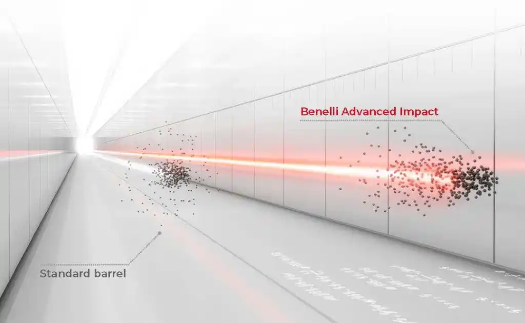 Schématiquement, la technologie Advanced Impact consiste à augmenter la partie cylindrique du canon, à la combiner avec des chokes spécifiques, tout en apportant une attention toute particulière aux cônes de raccordement. Simple sur le papier… beaucoup plus technique dans la réalité.