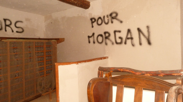 Mobilier cassé, tags intérieurs et extérieurs, ALF a procédé, comme à son habitude, en délabrant les lieux. Meubles, lits, fours détériorés mais également arrivée d’eau cassée, matériel de découpe du gibier volé et trophées également subtilisés explique le communiqué d’ALF. Sur le murs on peut lire des messages comportant le nom de Morgan ou Mélodie, rappelant évidement les 2 accidents tragiques.