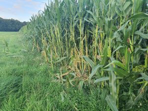 En effet, l’afflux d’eau a fait monter les tournesols qui dépassent facilement les 2 mètres, les rendant particulièrement fragiles. Le maïs tient mieux debout, mais il risque de subir également l’appétit des populations de sangliers toujours aussi bien portantes, et renforcées après 2 saisons plutôt tumultueuses en terme d’organisation de la chasse à cause du Covid.