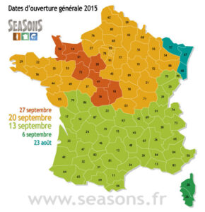 Chaque année, les dates d’ouverture de la chasse sont un véritable casse tête pour les passionnés, désormais, les ouvertures s’échelonnent durant tout l’été : le chevreuil à l’approche, le sanglier en battue, le gibier d’eau sur le département public maritime puis dans les marais intérieurs, sauf le chipeau et les canards plongeurs ainsi que les rallidés, la tourterelle des bois mais pas la turc ni le pigeon ramier… Difficile de s’y retrouver… Aussi, pour l’ouverture « générale » ; qui annonce en fait le départ de la saison de chasse aux migrateurs terrestres, du lièvre, de la perdrix et du faisan également pour quelques départements Français, notre partenaire Seasons vous propose une carte de France qui récapitule très simplement ces fameuses dates.