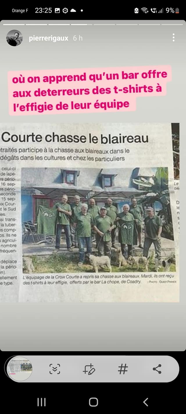MERCI A VOUS DE SOUTENIR LA VENERIE SOUS TERRE CHEZ MOI DES QUE JE PARLE DE BLAIREAUX TOUT LE MONDE PROMET MAIS PERSONNE NE SE DEPLACE! Signé ddsniper