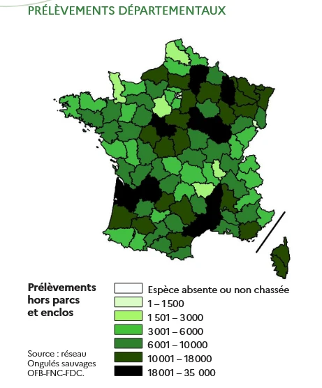 En ce qui concerne le cerf, on aurait pu s’attendre à ce que les prélèvements soient moindres sur la saison dernière, compte tenu des réticences des chasseurs à réaliser les plans de chasse jugés trop importants dans certaines départements.
