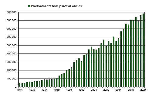 Ces réalisations sont avant tout opérées par les chasseurs car seuls 13 119 sangliers ont été tués dans le cadre des mesures administratives.