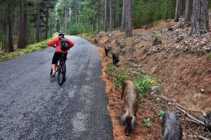 Et alors qui est en-dehors de son espace vital !!! Le cycliste qui se croit tout permis…ou l’animal qui évolue dans son espace naturel..Quelle gabegie…le mega predateur qui se pleint de ne pas disposer a sa gise de l’environnement..pauvre égoïste qui ne s’aperçois pas qu’il n’est pas du tout a sa place …