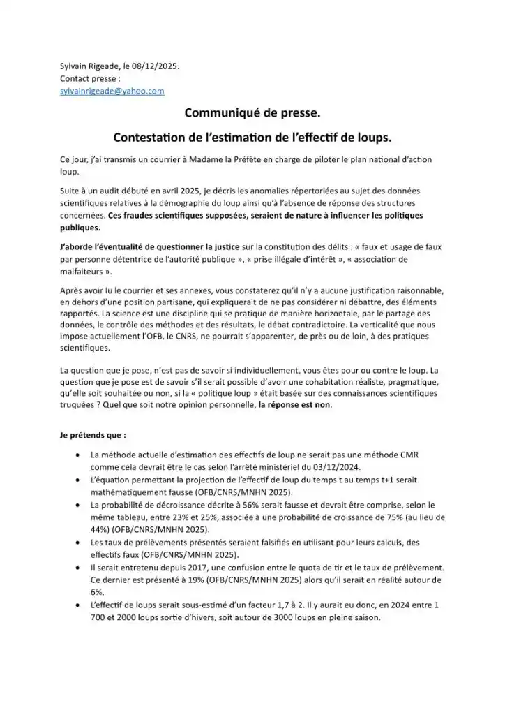 C’est le cas de Sylvain Rigeade, éleveur de la Drôme qui a travaillé le sujet et avait déjà par le passé affirmé que le nombre de loups était au moins deux fois supérieur aux estimations de l’OFB.