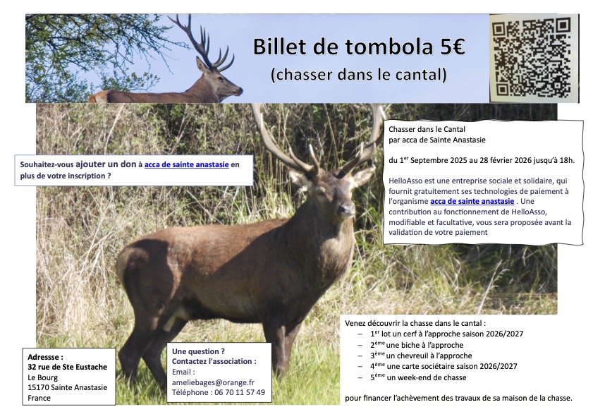 venez découvrir la chasse dans le cantal, par le biais d’une tombola