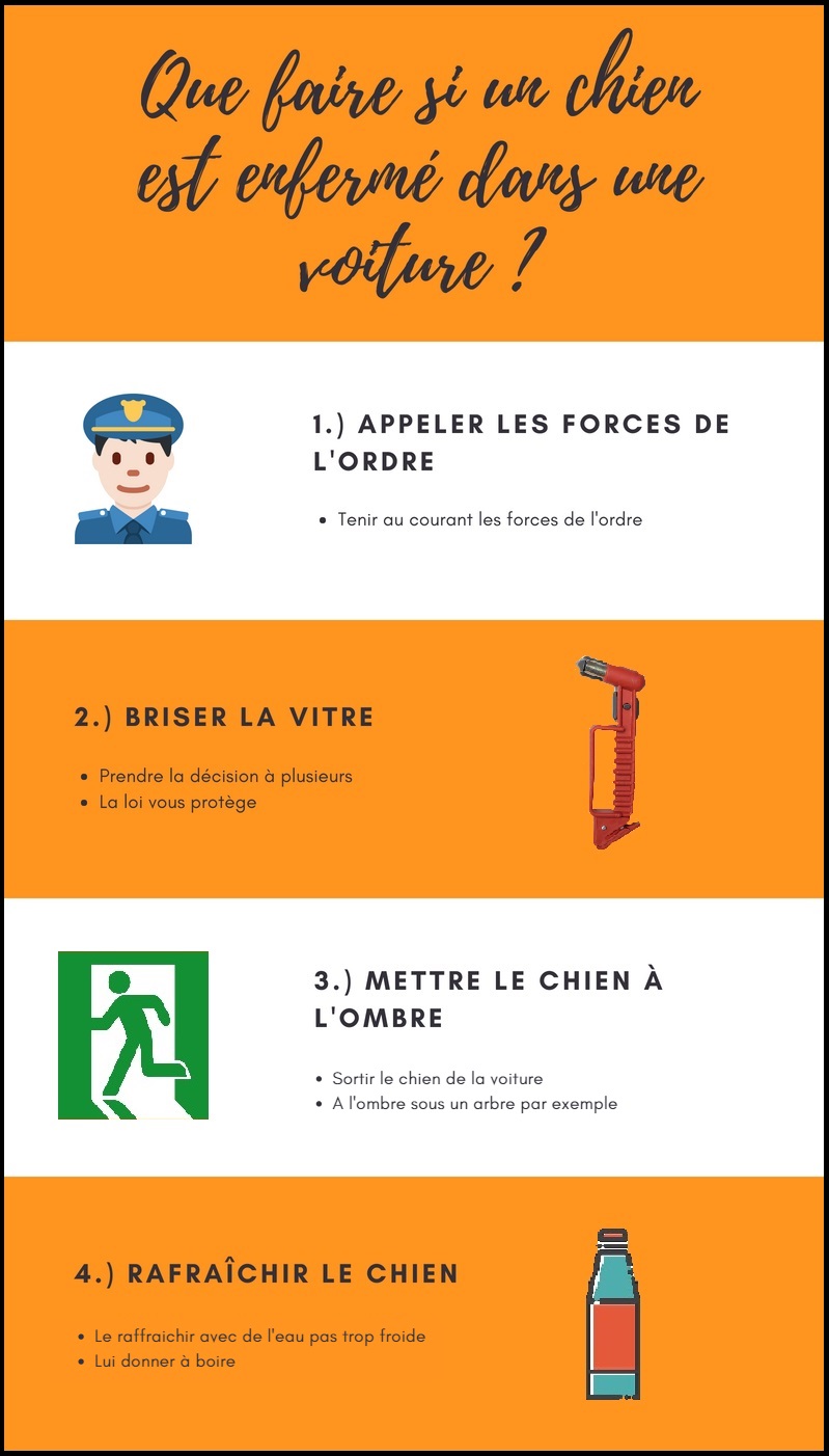 Vous allez nous dire, et si la situation est urgente ? Vous pouvez-vous-même casser la vitre du véhicule afin d’en extraire l’animal. Il est vivement conseillé en revanche de le faire en présence de 2 témoins, qui en cas de litige avec le propriétaire de l’animal pourront attester du cas de force majeure.