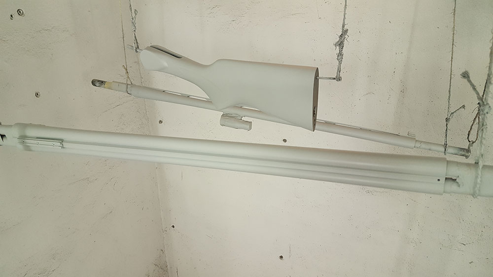 Puis une application au pistolet d’une couche d’accroche dite « peinture d’apprêt » en époxy est ensuite réalisée sur toutes les pièces de l’arme. Le spécialiste de l’hydro dipping réalise ce passage dans une chambre de peinture dédiée qui empêche les différents grains de poussières de se coller et ainsi déformer ultérieurement le film. Cet apprêtage est de plus une occasion rêvée de traiter les parties métallique contre la corrosion et les outrage du temps.