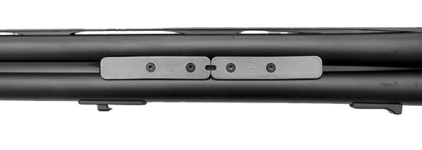 - En dépit du jargon publicitaire, la conception de la canonnerie Triplex® n’a rien de « révolutionnaire ». Pour être francs, nous étions même quelque peu inquiets par l’alésage des canons en 18,6mm et par le profil plutôt court des chokes amovibles. Cependant, nous devons avouer que nous avons été agréablement surpris par l’efficacité du canon de 81cm qui a su répondre présent sur nos challenges de tirs extrêmes et par les résultats lors des ciblages.