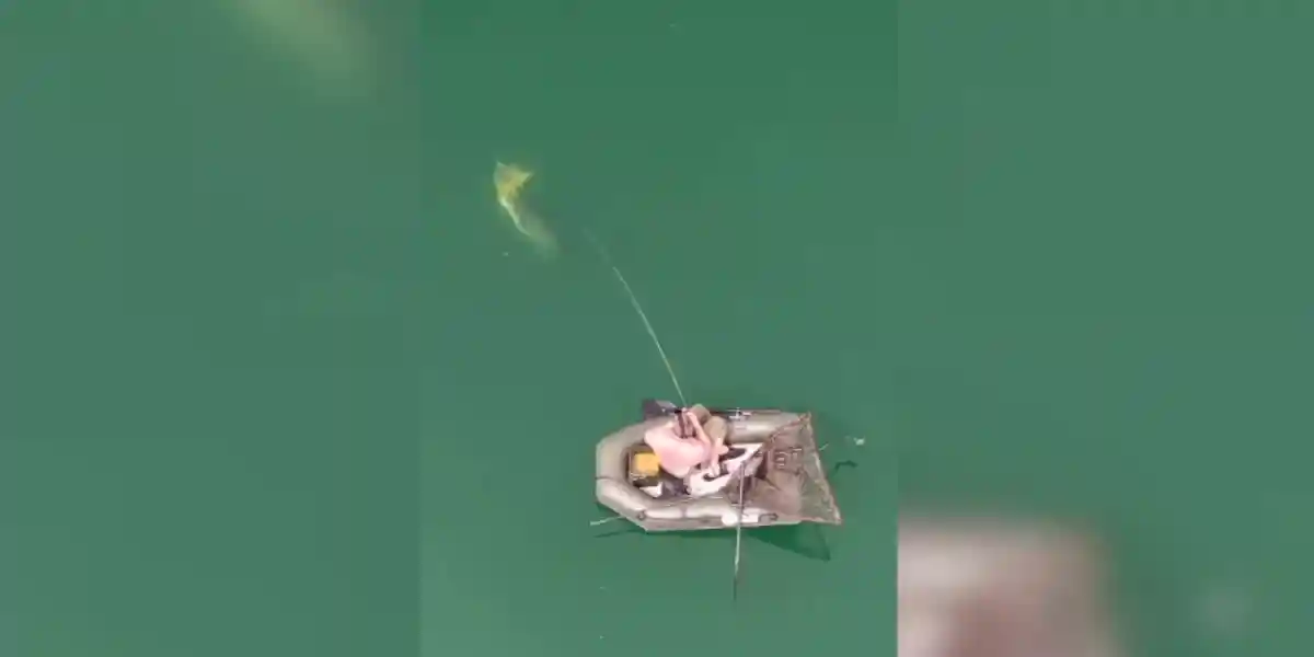 Tandis que le pêcheur bataillait ferme pour remonter la carpe au bout de sa ligne, il a pu filmer l’attaque du prédateur qui n’a pas hésité à s’en prendre à un poisson plutôt costaud, même pour un poisson de sa taille.