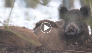 Une magnifique vidéo mais très courte de Dominique Gest surprend une laie et ses bêtes rousses en pleine sieste !